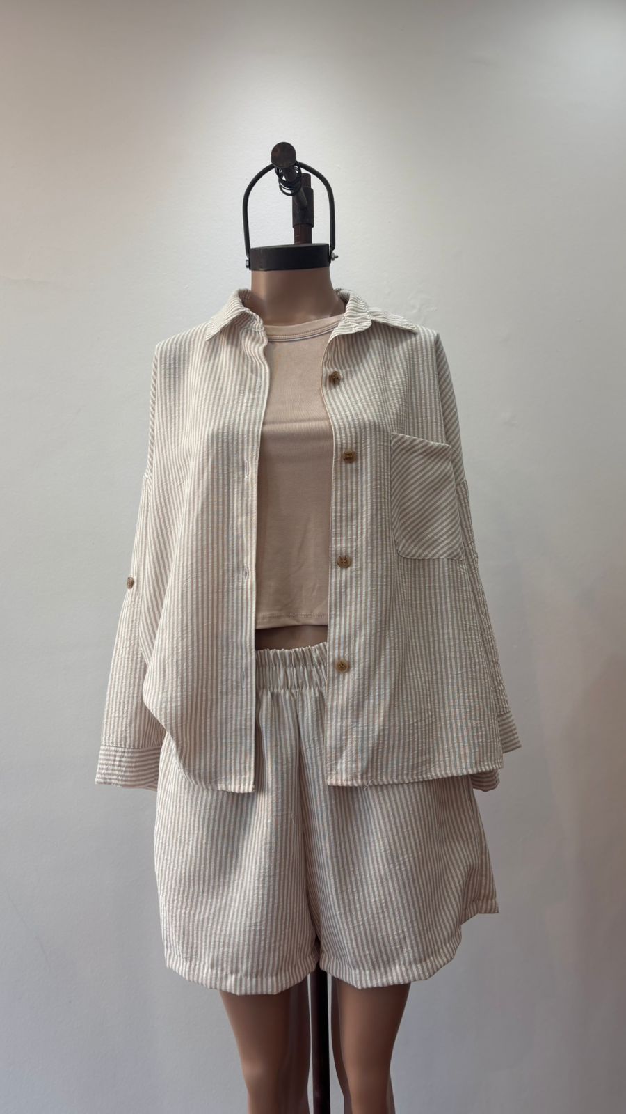 Conjunto de Camisa y Short beige. Va hasta un talle L.